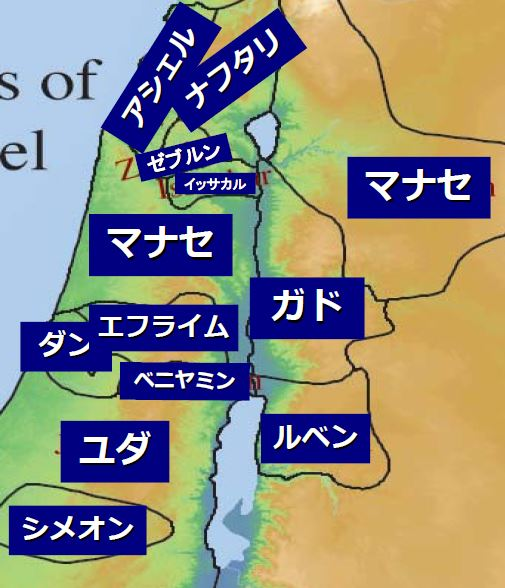 この6部族はユダヤ民族の中では少数部族に属し、あまり力はなかったのです。ユダヤ民族の中ではヨセフの子孫とユダの子孫が強大な力と数を誇っていました。ですから、北のほうはヨセフの子孫が多く領地を取り、南のほうはユダの子孫がその領地を多くとっていたのです。最後に残ったこの7つの部族はその間にあって、わずかな領土を分け合ったのです。その中で、ヨセフの弟のベニヤミンはまだ恵まれた場所を与えられていますが、今日の6部族は強大な二つの部族の間を申し訳なさそうにその領地を与えられているというのが現状です。でも12部族に対して、最後までしっかりと分割したことはヨシュアの手腕と言わなければなりません。ヨシュアは祭司の系統なので、最後に、各部族から少しずつ募って、ヨシュアの部族のために領地が与えられることになります。
